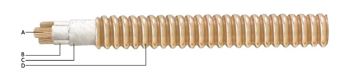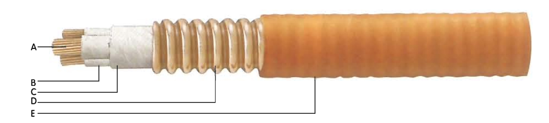 Struttura di cavi flessibili ignifughi con guaina in rame rugoso